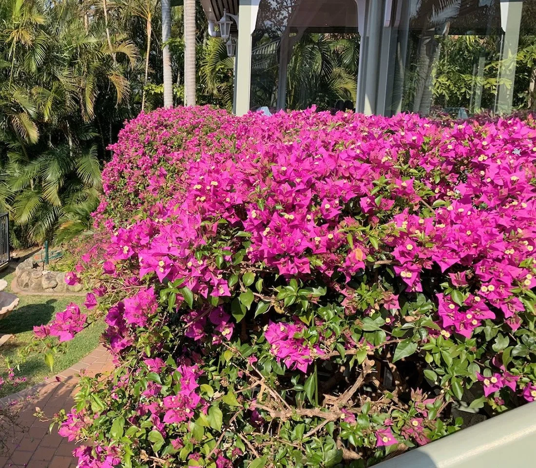 Bougainvillea thorns pose a danger during maintenance - new growth often has soft thorns, but older mature stems have hard, woody thorns that often cause infection if they pierce skin. Most gardeners don’t enjoy working on Bougainvilleas, but with the right safety gear, equipment and a good maintenance plan we can reliably shape these plants and encourage amazing displays of colour during flowering.